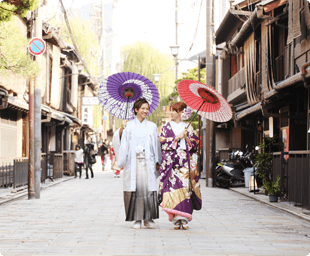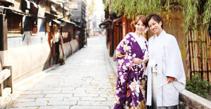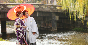 สามารถเลือกโลเคชั่นในการถ่ายพรีเวดดิ้งนอกสถานที่ได้ 2 โลเคชั่นในเมืองเกียวโต เกียวโต (Kyoto) เป็นเมืองที่เด่นด้านการท่องเที่ยวเชิงวัฒนธรรมของญี่ปุ่น และมีสถานที่สำคัญหลายจุดที่เหมาะสมอย่างยิ่งสำหรับการถ่ายภาพ Pre wedding โดยท่านสามารถเลือกโลเคชั่นชื่อดังในเกียวโต เพื่อถ่ายพรีเวดดิ้งนอกสถานที่ได้ 2 สถานที่ เช่น ย่านกิอง (Gion)ที่มีทางเดินหินที่สวยงามสไตล์ญี่ปุ่น , ย่านชิราคาว่า (Shirakawa) ที่มีโลเคชั่นอยู่ติดริมแม่น้ำ , บริเวณศาลเจ้าเฮอันจินกุ (Heian Jingu Shrine), บริเวณรอบข้างของวัดคิโยมิสุ (Kiyomizu dera) เป็นต้น การถ่ายพรีเวดดิ้งในสถานที่ท่องเที่ยวชื่อดังของเกียวโตด้วยชุดแต่งงานสไตล์ญีป่นเป็นแพลนถ่ายพรีเวดดิ้งยอดขายอันดับหนึ่งของบริษัทเรา อีกทั้งยังมีสถานที่ถ่ายพรีเวดดิ้งที่น่าสนใจใกล้เคียงกับเกียวโต คือ ณ ปราสาทฮิโกเนะ(Hikone castle) ปราสาทแห่งนี้มีสวนสไตล์ญี่ปุ่นและตัวยอดปราสาทที่สวยงามและเป็นสถานที่สำคัญในประวัติศาสตร์ญี่ปุ่นอีกด้วย เรารับรองว่าท่านจะสามารถดื่มด่ำกับบรรยากาศพรีเวดดิ้งสไตล์ญี่ปุ่นได้อย่างจุใจ