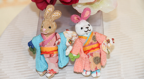 ทางเราขอมอบของที่ระลึก “เครื่องรางผูกรัก” ให้กับคู่บ่าวสาวเพื่อให้มีความสุขร่วมกันตลอดไป นอกจากนี้ยังมีของเล็กๆ น้อยๆ ที่ทาจากผ้าของญี่ปุ่นมอบให้เป็นที่ระลึกด้วย